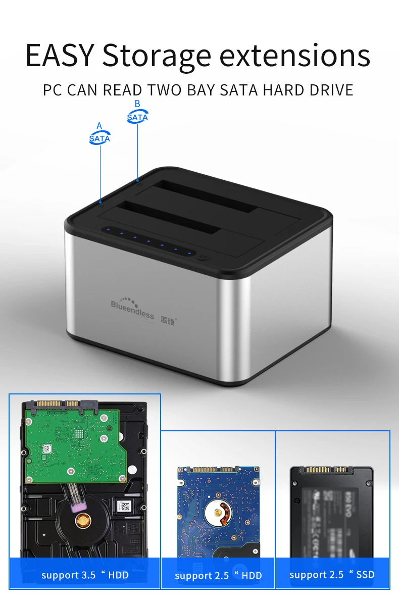 Отправка от RU hdd 5 Гбит/с Супер Скоростной sata usb 3,0 2bay док-станция для жесткого диска Алюминиевый жесткий диск адаптер 2,5 "/3,5" коробка для хранения