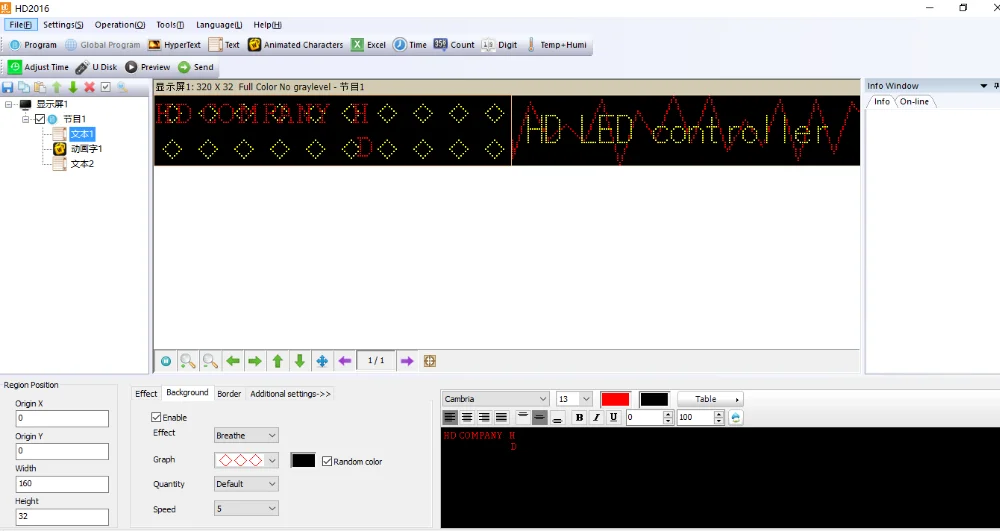 | HD2016 программное обеспечение новые функции | Поддержка области и перекрытия слоев, добавление художественного слова, анимационного слова, поддержка смарт-настройки для всех модулей, добавление многих новых эффектов отображения, добавление счетчика и таймера кнопками и пультом дистанционного управления, поддержка вращения текста и SDK | ||