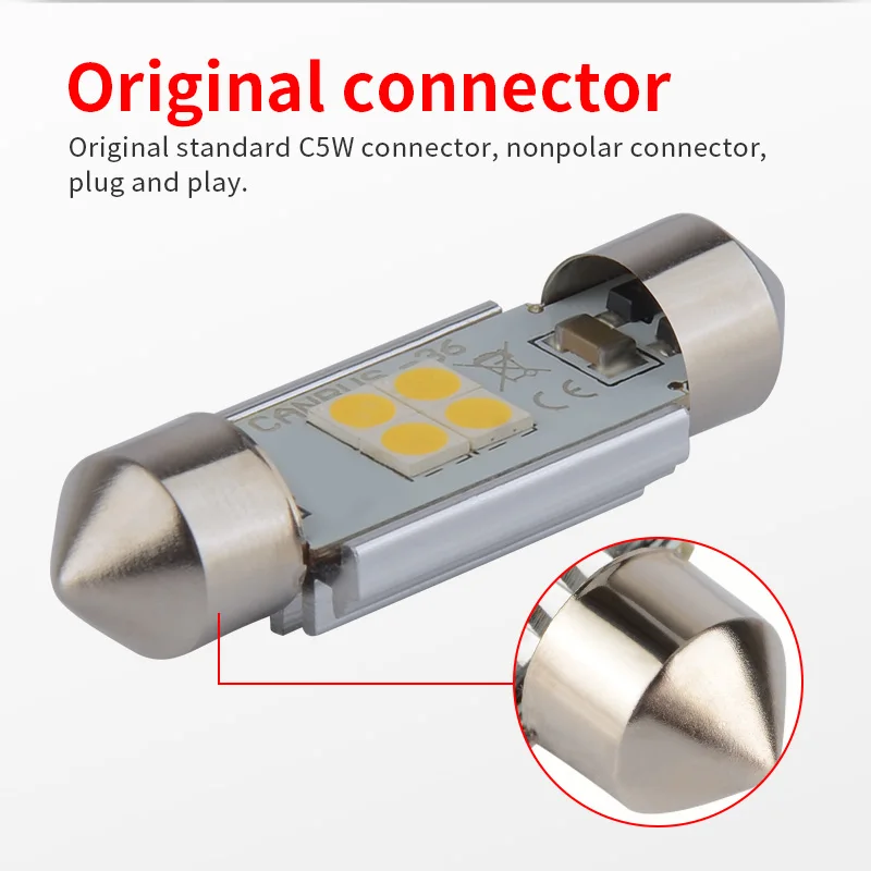 Модель: C5W/C10W Цветовая температура: белый Гарантия: 1 год Тип СВЕТОДИОДА: 4 шт. 3030 чипов Рабочее Входное напряжение: 12 В постоянного тока 28 мм/31 мм: 1,6 Вт 36 мм/39 мм/41 мм/44 мм: 1,9 Вт 28 мм/31 мм: 300 лм 36 мм/39 мм/41 мм/44 мм: 450лм Применение: Автомобильный внутренний свет, карта света, купол света, свет для чтения, Освещение багажника, Освещение номерного знака, освещение двери и т. Д. Гарантия: 1 год гарантии (беззаботное послепродажное обслуживание)