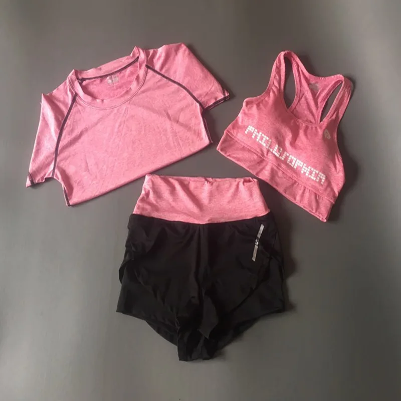 Комплект из 3 предметов, женские комплекты Yuga, спортивный костюм для фитнеса, футболка с короткими рукавами + леггинсы + шорты, спортивная одежда