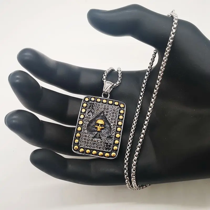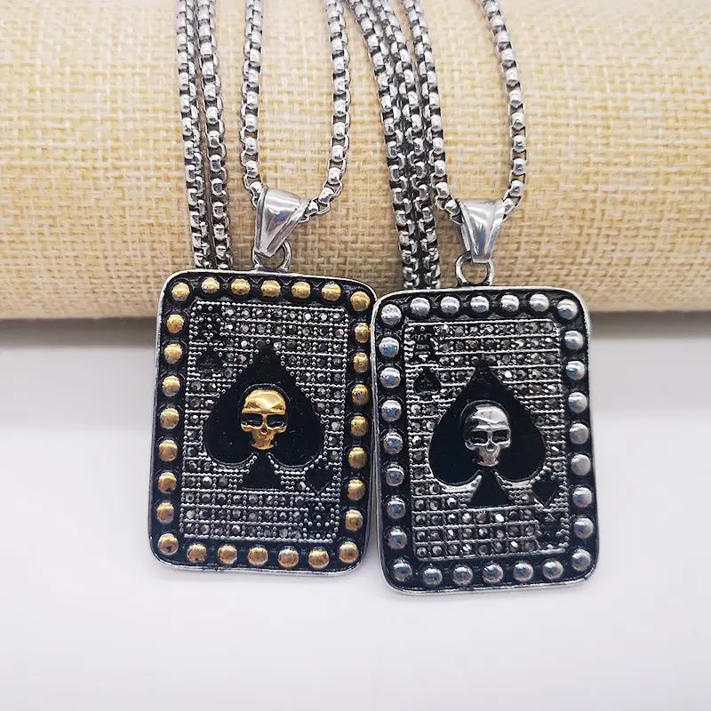 Полностью Стразы, кристаллы, лопата, Ace Poker, ожерелье, кулон 316L, нержавеющая сталь, лопата, Ace, Череп, ожерелье для покера, модные ювелирные изделия