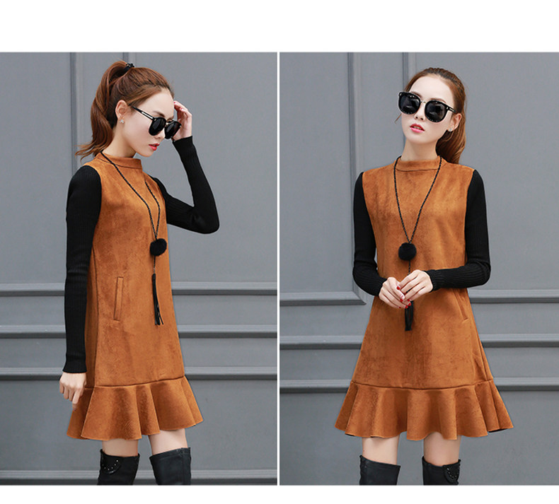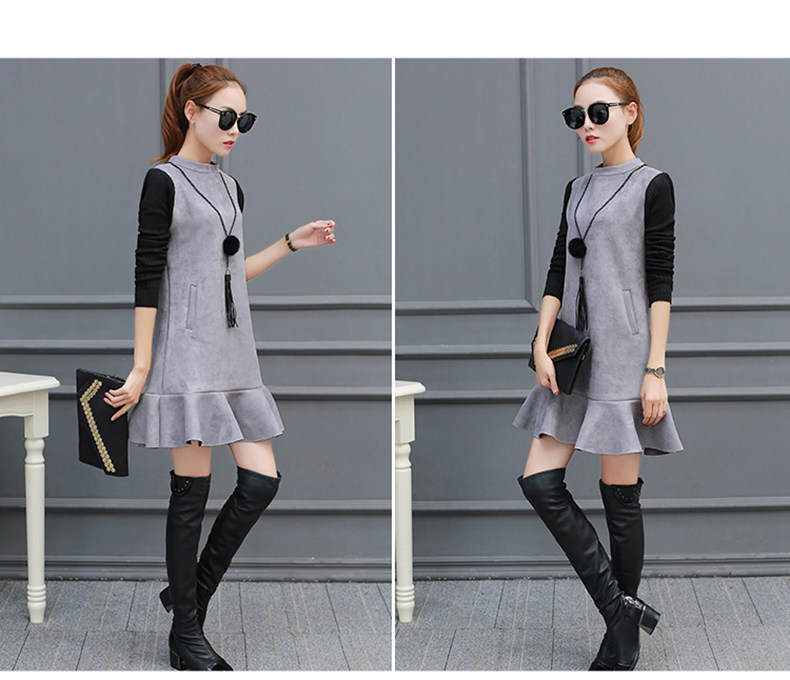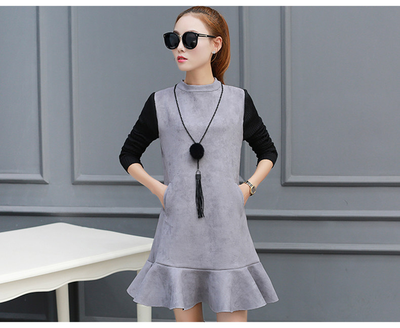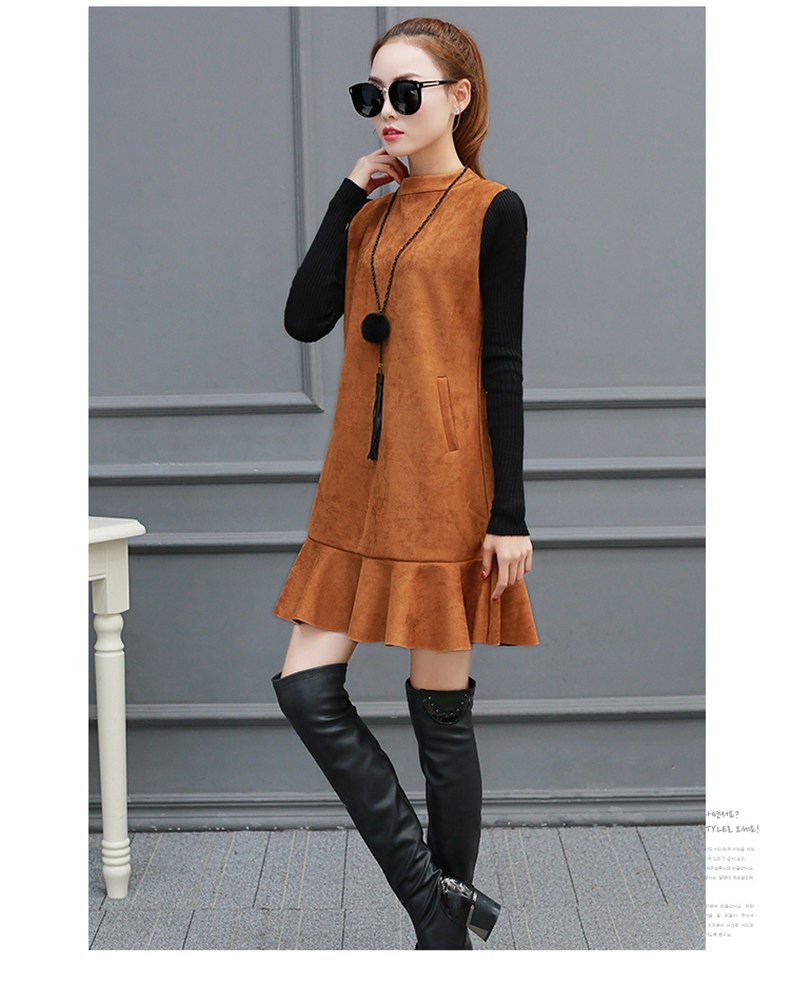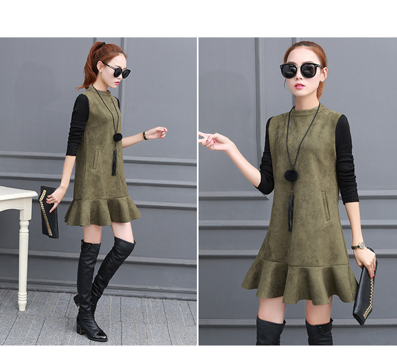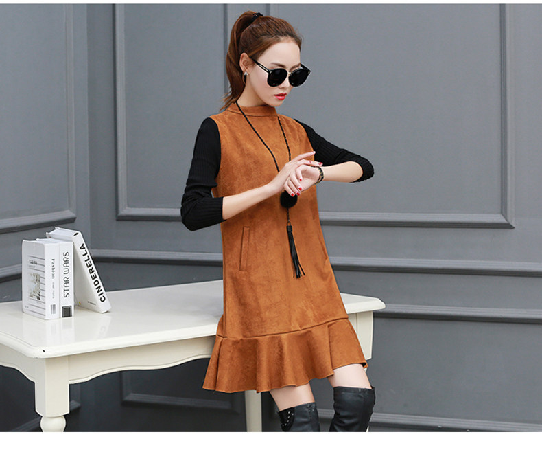 Осень Замшевое платье Женская зимняя обувь Платья для женщин Для женщин Мода 2017 г.