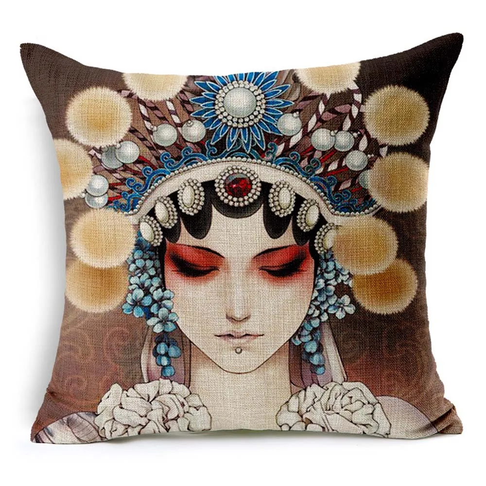 Наименование товара: Freelove, хлопок, лен, сверхмощный, ручная работа, наволочка, невидимая молния, наволочка для подушки, домашний декор 18 ''x 18'', Пекинская опера, Хуа-дан