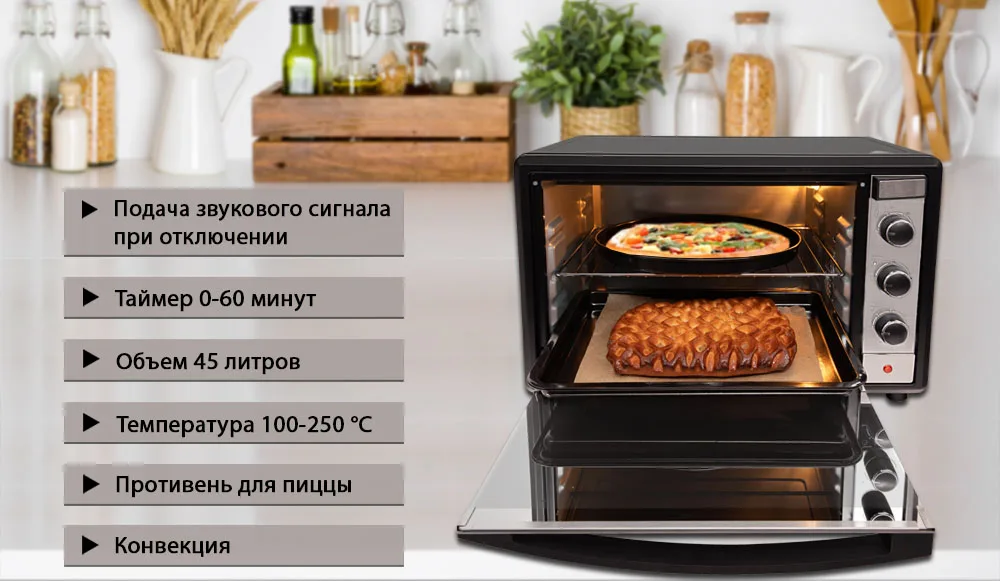 Любители пиццы по достоинству оценят настольные духовки AVEX, которые укомплектованы дополнительным, круглым противнем для приготовления пиццы. Теперь вы можете радовать близких не только запеченным мясом или вкусными пирогами, но и настоящей итальянской пиццей. Настольные духовки AVEX сочетают в себе отличную функциональность, экономичность и стильный дизайн.