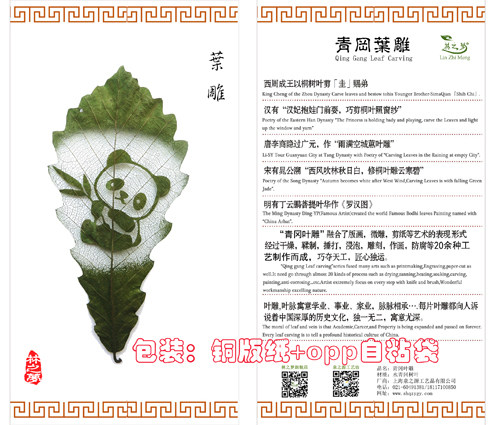 Ручная роспись листа декоративная картина усыновляет осень падших листьев в качестве носителя, в 20 шагах выбора, впитывание, промывка, биологическое лечение, гравюра, замешивание и сушка, наделены различными художественными формами печати, скульптуры, бумажного среза, каллиграфии, в полной мере использовать переплетенный контекст листа, И даже его деформация, чтобы создавать художественные моменты, в то время как общественное питание в отношении возвращения к природе, который широко используется в случае канцелярских принадлежностей, гостиниц, школьных и конторских принадлежностей, книжных аксессуаров, бизнес-подарки, художественные рукоделие, предметы снабжения.