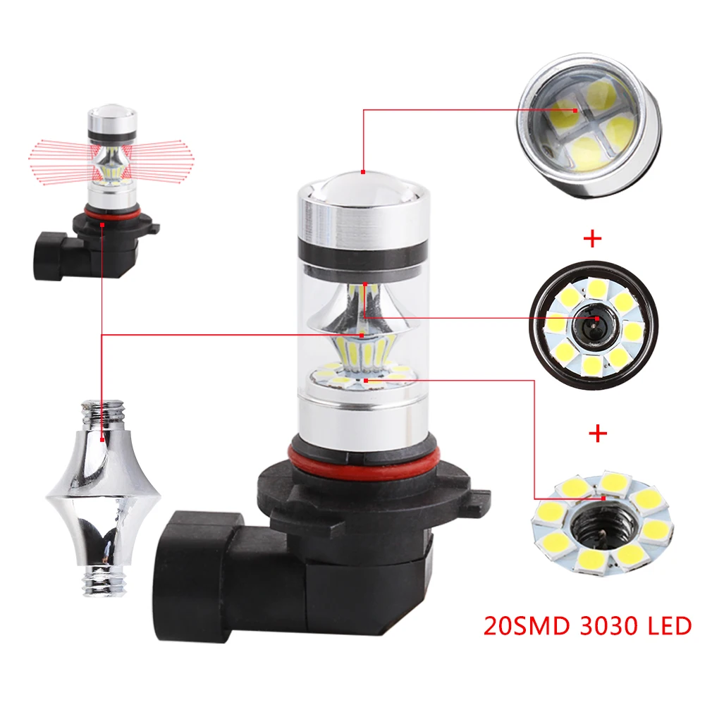 9005 HB3 100 Вт светодиодный лампы Противотуманные фары Дневные Фары Светильник фар дальнего света DRL Дневной Runnight светильник автомобильный светильник источник света парковка 1250LM 12V-24V 6000K белый