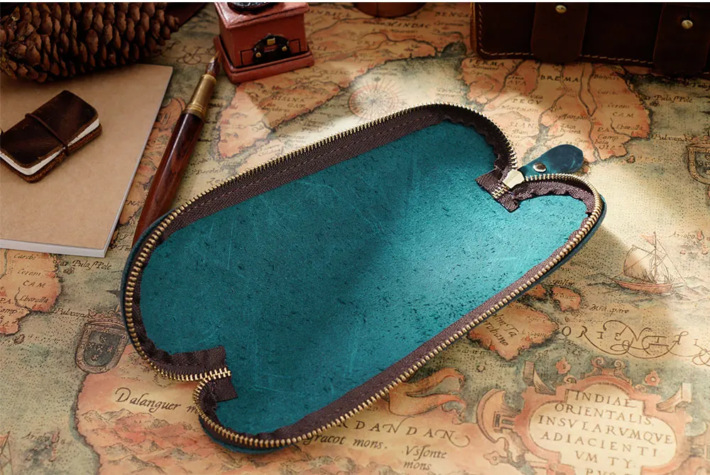 Crazy Horse кожа: Хотя это называется Crazy Horse кожа, на самом деле она сделана из воловьей кожи. Это нормально, что эта кожа легко подобрать царапины и имеет преобразование цвета, когда вы его складываете. Царапины могут быть потерты мягкими. После нескольких месяцев использования кожа станет блестящей и яркой, что делает ее более винтажной и деревенской. Примечание: старайтесь избегать воды или масла при использовании. Если кожа грязная, просто аккуратно протрите ее губкой.