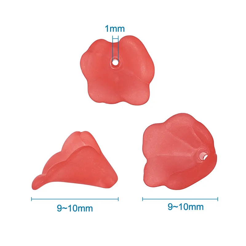 100 шт./лот прозрачные матовые окрашенные цветки лилии Цветочные цветки акриловые бусины разных цветов Размер: около 9 ~ 10 мм в длину, 9 ~ 10 мм в ширину