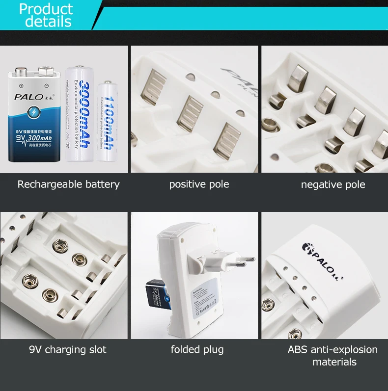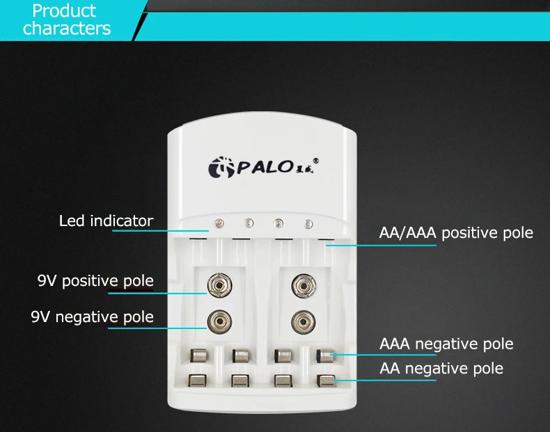 1. Это зарядное устройство может заряжать 2/4 шт. AA AAA Ni-MH или Ni-CD аккумулятор rechargeabale и 2 шт. 9 в Ni-MH или литий-ионный аккумулятор. 2. Таймер управления, светодиодный будет светильник на при зарядке, выключить Вай-Фай, когда идете в установленные сроки. (9,5 часов)