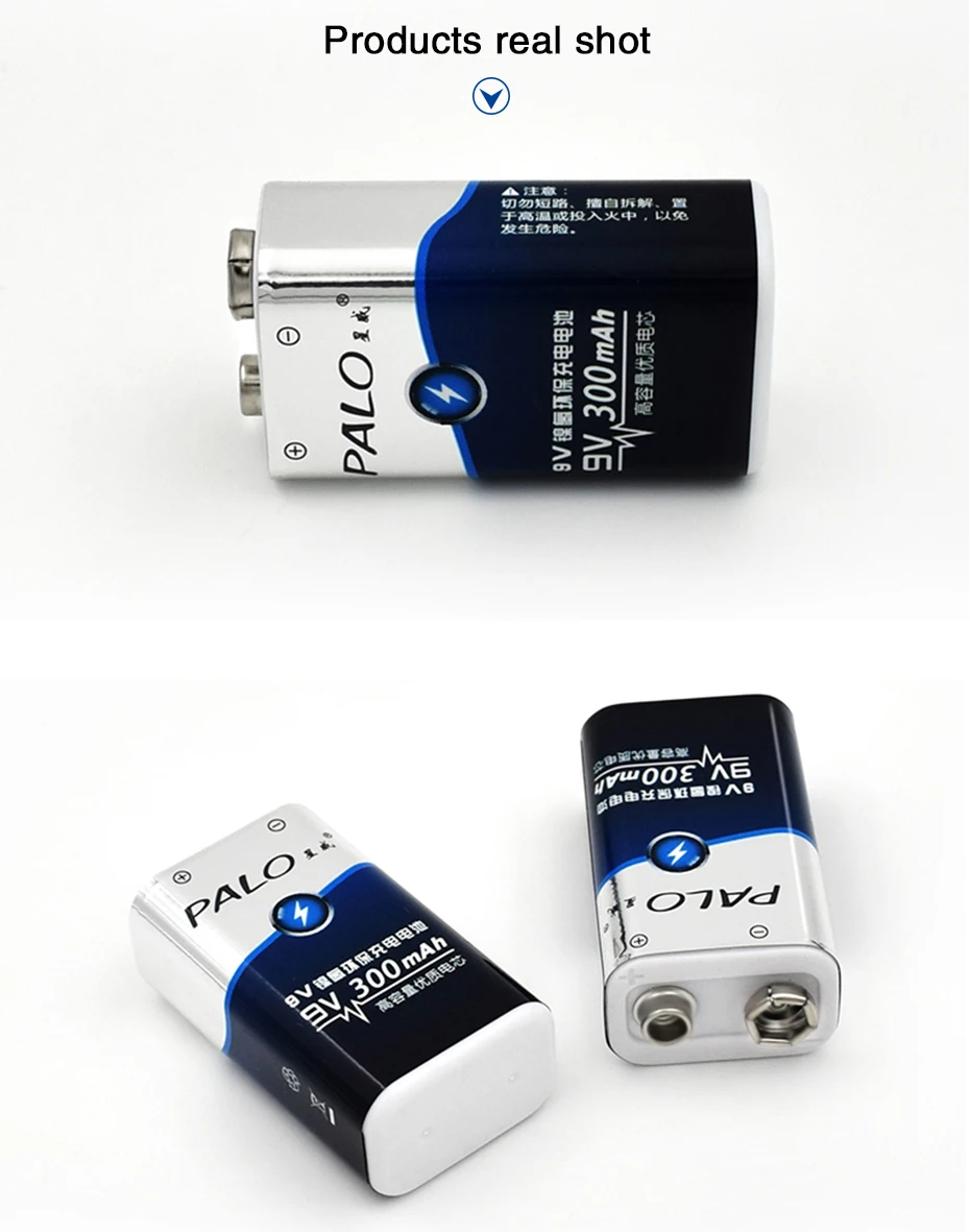 Преимущества низкого саморазряда батареи: 1. Высокая скорость удержания. 2. Сильная способность удерживать напряжение батареи. 3. Низкая скорость потери емкости аккумулятора. 4. Длительный и стабильный Срок службы батареи. 5. Высокая производительность разряда. Особенности: 1. Тип: перезаряжаемая батарея 2. Емкость: 300 мАч 3. Напряжение батареи: 9 В 4. Химия: Ni-MH 5. Вес: 30 г Внимание: 1. Аккумулятор хранится в прохладном и сухом месте. 2. Не Разделяйте, не выдавливайте и Не ударяйте. 3. Не помещайте аккумулятор в воду и огонь. 4. Держите подальше от детей.