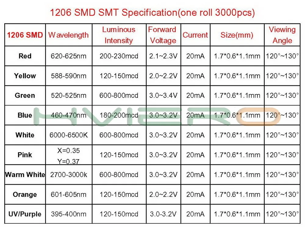 500 шт 1206 SMD/SMT СВЕТОДИОДНЫЙ светильник (цвет по вашему выбору) Примечание микс включает 1206 SMD/SMT СВЕТОДИОДНЫЙ светильник Белый, красный, синий, зеленый, желтый каждый 100 шт. всего: 500 шт.Смотрите так же другие товары: