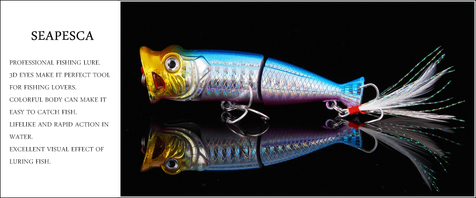 1. Имитация рыбной кожи: дизайн имитации рыбной кожи делает ее более привлекательной для большой рыбы. 2. Качественные крючки: оснащено высококачественными крючками, антикоррозийные, более сильная мощность, прочная, пресная вода морская вода универсальная. 3. Более сильные Бициклические Кольца: усиливают двойной круг повышенное сопротивление к натяжению. 4. 3D Глаза рыбы: 3D глаза моделирования, большие и яркие, более Соблазнительные Светоотражающие лучше. 5. Металлические шарики: шарики из нержавеющей стали внутри, чтобы сохранить баланс рыболовной приманки, для дальнего расстояния литья. 6. Упаковка продукта: SEAPESCA хорошая Розничная ПВХ коробка. Подробная информация о продукте: Бренд: SEAPESCA Тип: Поппер рыболовная приманка Масса: 11 г/0,39 унций Длина: 80 мм/3,15 дюйма Глубина погружения: 0-1 м Крючки: оснащены 2 качественными крючками Кольца: усиленная конструкция Цвет: 7 разных цветов Рыба-мишень: щебень, желточечный карп, змееголова Посылка список: 1 шт. * рыболовные приманки