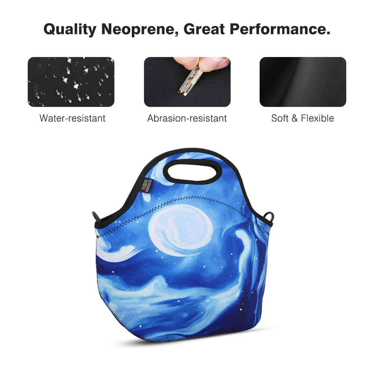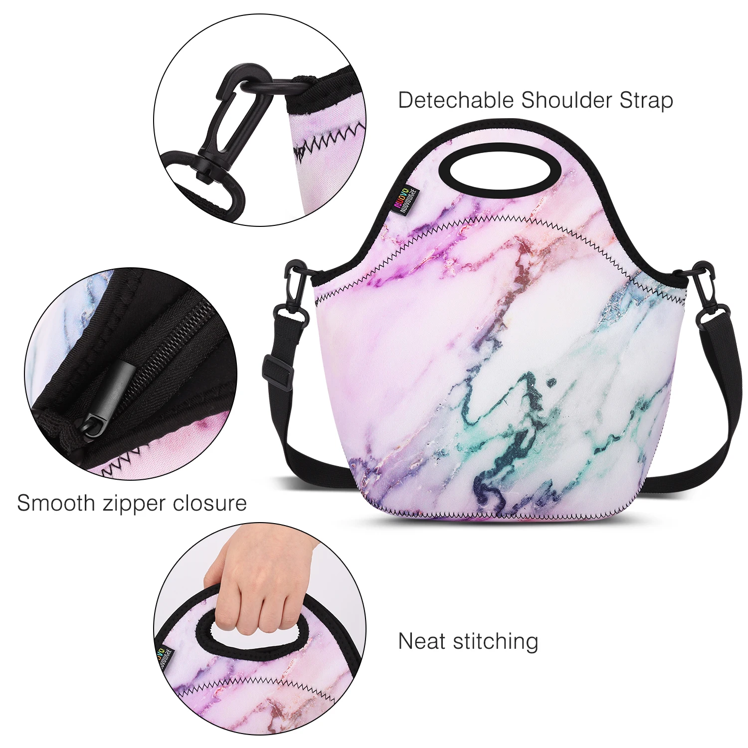 Премиум Материал: изготовлен из высококлассного нетоксичного толстого гибкого неопренового материала, который непроницаем для воды и сохранения тепла, помогает сохранить вашу еду или напитки при правильной температуре и защищает от разливов, брызги, удары и капли. MULTI-FUNCTION: Может использоваться в качестве сумки для ланча, сумки для пикника и сумки для покупок в супермаркете для школы или офиса изоляция для обеда, вина, сохранения фруктов, напитков, замороженных продуктов, закусок, лекарств или других предметов хранения. Надежность: эластичный мешок может расширяться и помещаться в различные контейнеры, а затем легко складывается, когда он не используется для хранения. Плоское дно и застежка-молния удерживают ваши предметы внутри в вертикальном положении, предотвращая опрокидывание. HUMANIZED детали: обе стороны поставляются с поворотным на 360 градусов крючком, который можно использовать в качестве сумки или сумки через плечо; складной и портативный дизайн, легко носить с собой и более компактный. Мягкая ручка позволяет легко переносить. Регулируемый плечевой ремень: 1 дюйм Ширина shoudler ремень удобен для подшипника. Регулируемый диапазон от 69 см (27,2 дюйма) до 134,6 см (53 дюйма), помогает людям с разным ростом носить его удобно и легко