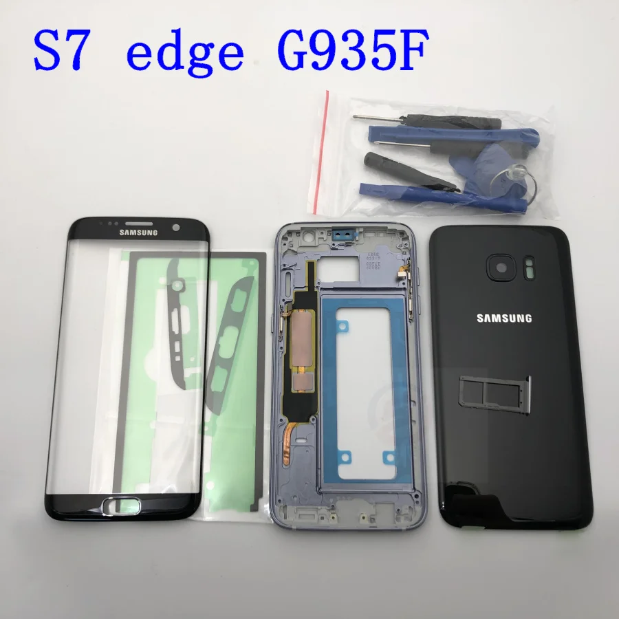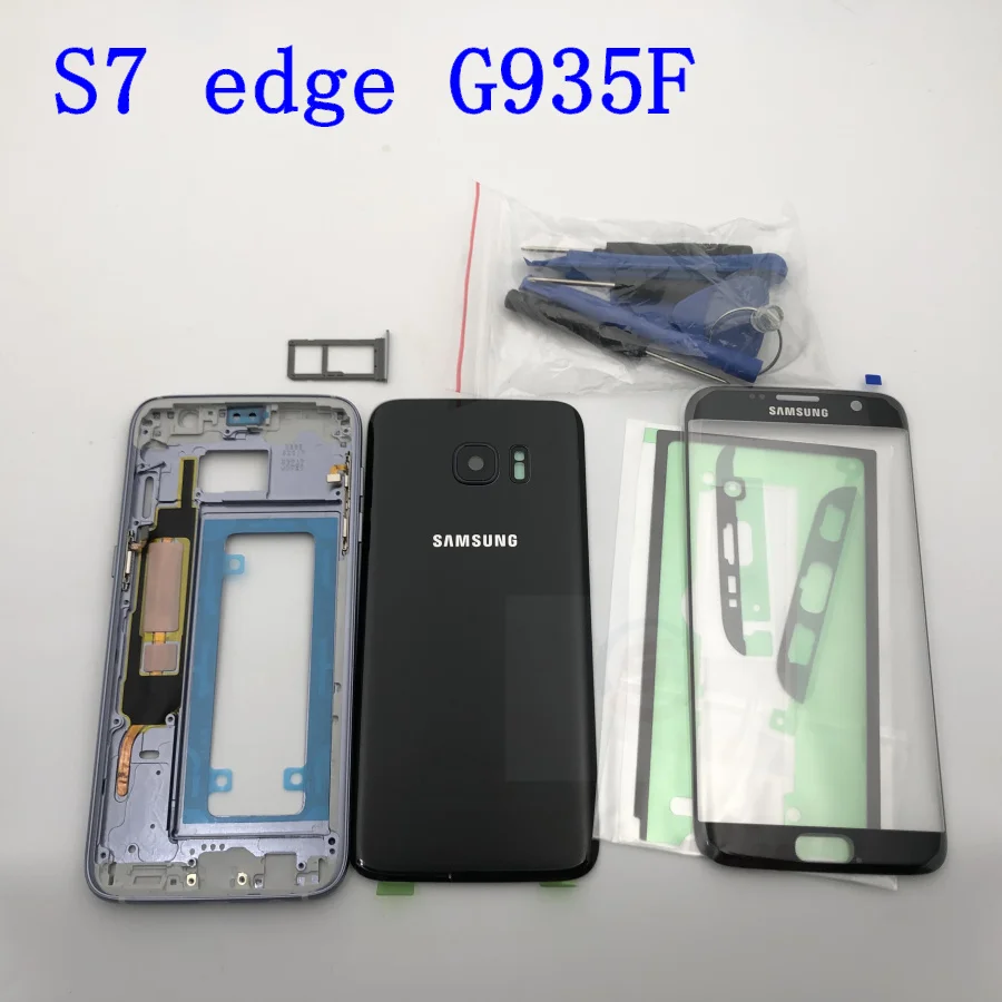 Замена поврежденного чехол, фирменная Новинка, высокого качества продукции с 100% Точная посадка! Чехол на весь корпус задняя крышка + передний экран стеклянный объектив + средняя рамка для Samsung Galaxy S7 край G935 G935F комплект запасных частей Посылка в комплект входит: 1 шт х средняя рамка 1 шт х Батарея покрывающая телефон по всей поверхности + Камера объектив + клей. 1 шт х SIM разъем карты 1 шт х Клей 1 шт х чехла для переднего Экран Стекло 1 Набор инструментов в подарок