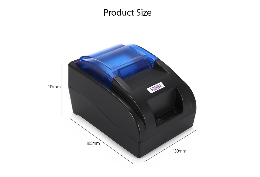 | Packing Contents | 1 x HOIN HOP - H58 Thermal Printer, 1 x CD Driver, 1 x Power Adapter, 1 x Roll of Thermal Paper, 1 x USB Cable, 1 x English Manual |