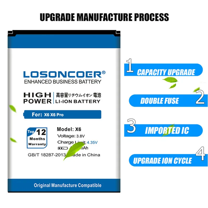 4. Большой емкости с lonG время работы в режиме ожидания.Losoncoer батарея бренд