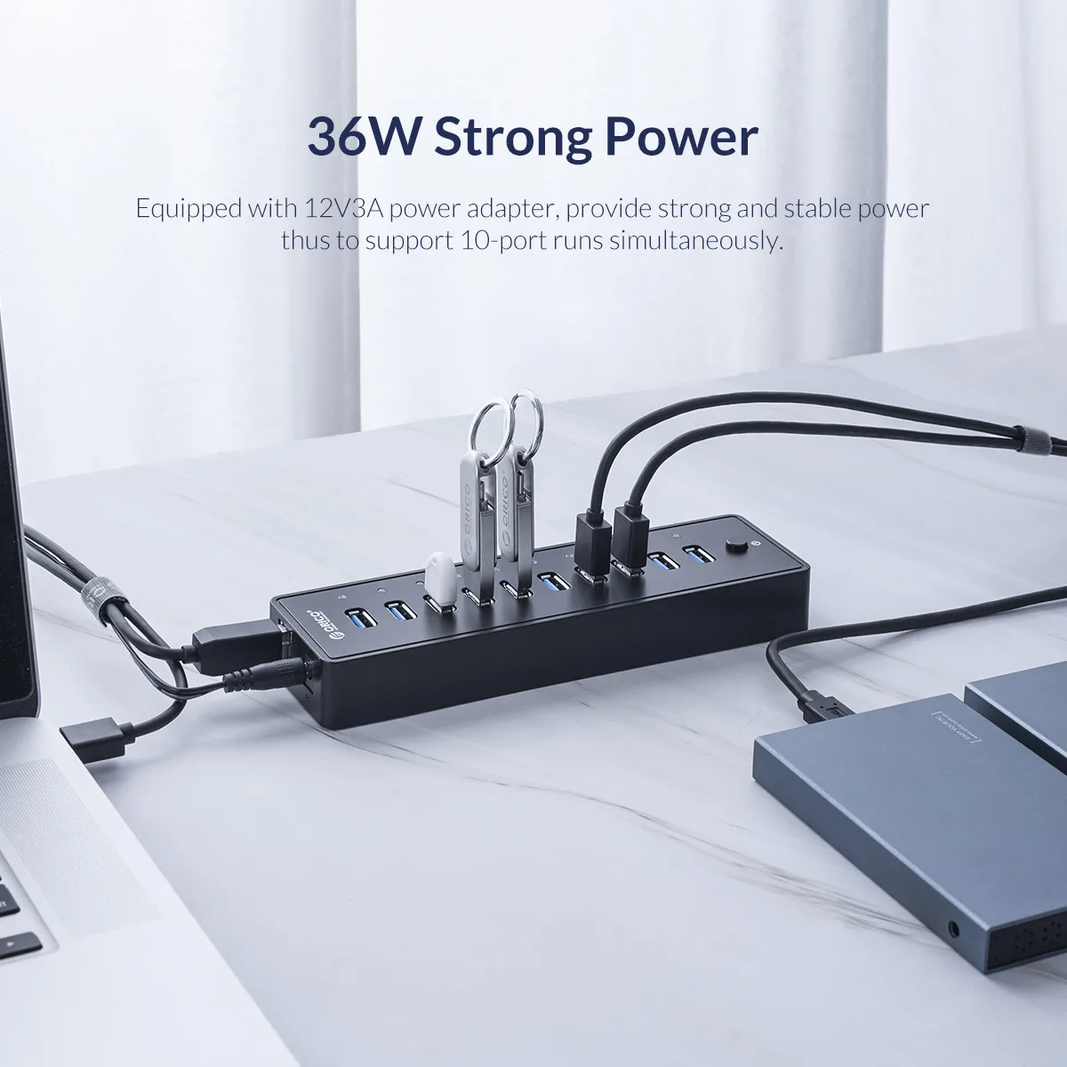 Этот usb-адаптер поставляется с адаптером 12 В, он поддерживает одновременное подключение 10 периферийных устройств и гарантирует стабильную работу при подключении к устройствам с высоким энергопотреблением, таким как внешние жесткие диски (поддержка 2 ТБ жестких дисков большой емкости).