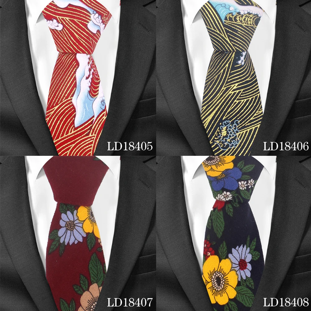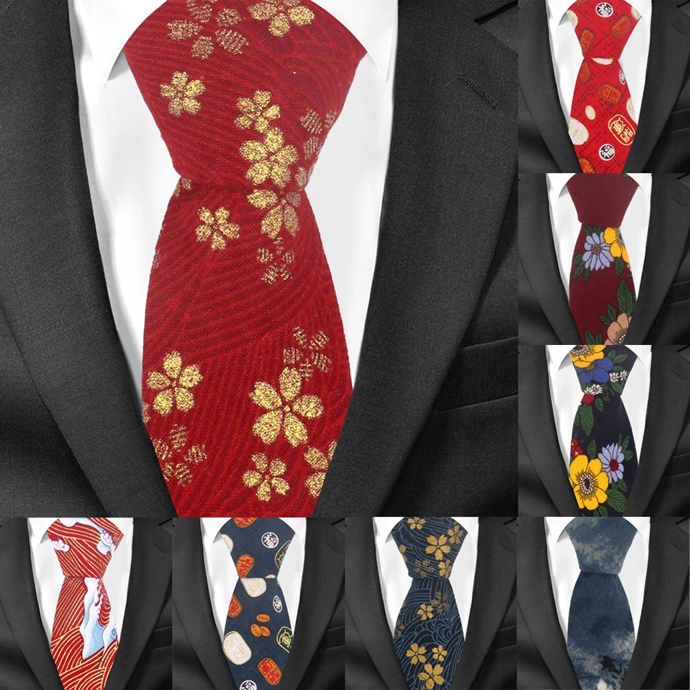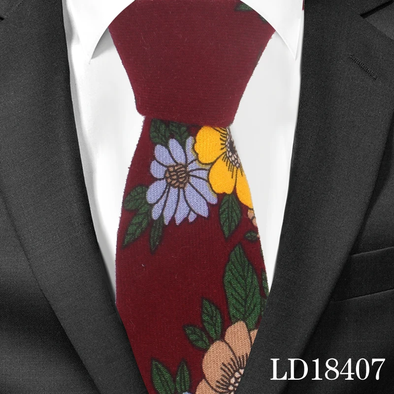 Мужские галстуки с цветочным принтом, повседневный костюм, галстук из хлопка, ширина 7 см, модный мужской галстук