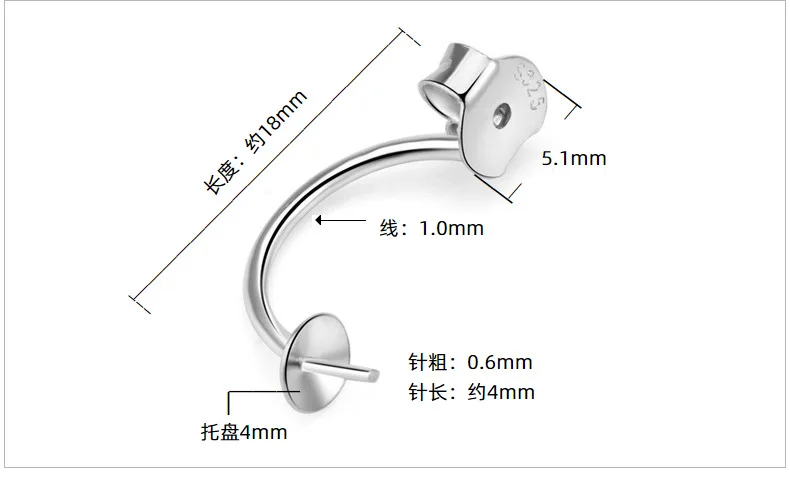 Название: перламутровые пустые затычки для ушей Материал: Стерлинговое Серебро 925 пробы Технические характеристики: бусины 4 мм/4 мм затычки для ушей/1,0 производственная линия/Оборудование для длина 17,5 мм/об 0,641 грамм Цвет: платина, серебро, золото, розовое золото