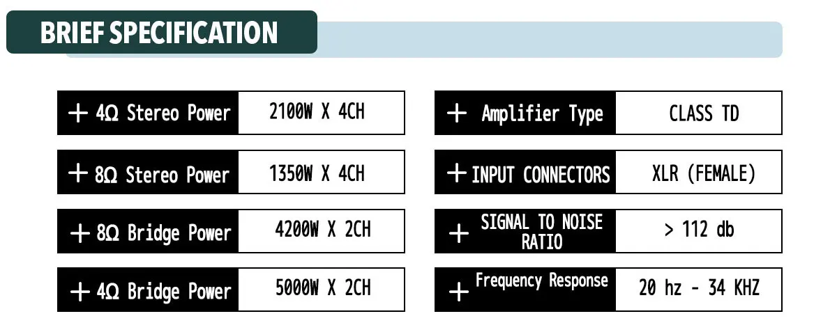 4 канала класс TD цифровой усилитель мощности. 4x2200 Вт на 4 Ом, 4x4000 Вт на 8 Ом. Супер качество звука Creat. Управляйте звуковым эффектом при помощи сенсорного экрана 4 "светодиодный экран. Или Управляйте звуковым эффектом с помощью компьютера. Простое программное обеспечение DSP, не нужно устанавливать, легко управлять им. Режим работы моста для туристических приложений. Комплексная схема защиты. Обновленный высококачественный конденсатор 3300 мкФ 200V до 3600 мкФ 200V Используйте оригинальный транзистор. Высококачественные разъемы. Характеристика Сенсорный экран Усилитель встроенный процессор, 4-дюймовый Размер ЖК-экран, который может сенсорный экран, управление усилитель звуковой эффект. Управление программным обеспечением DSP усилитель также cintrol ПК, через программное обеспечение может более точная регулировка dsp процессора. Управление несколькими усилителями мощности Один ПК может самостоятельно управлять усилителем serveral dsp одновременно.