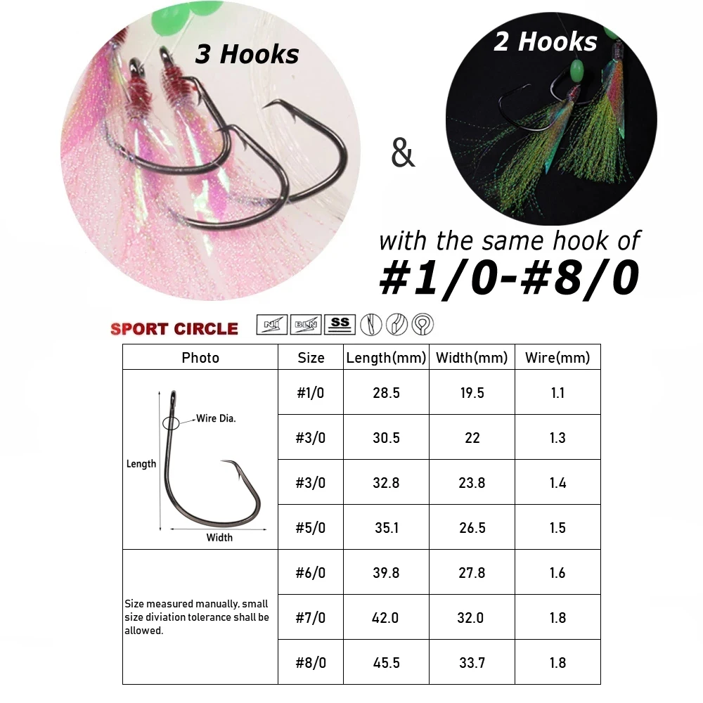 -Размер Крючка: 1/0, 3/0, 4/0, 5/0, 6/0,7/0, 8/0