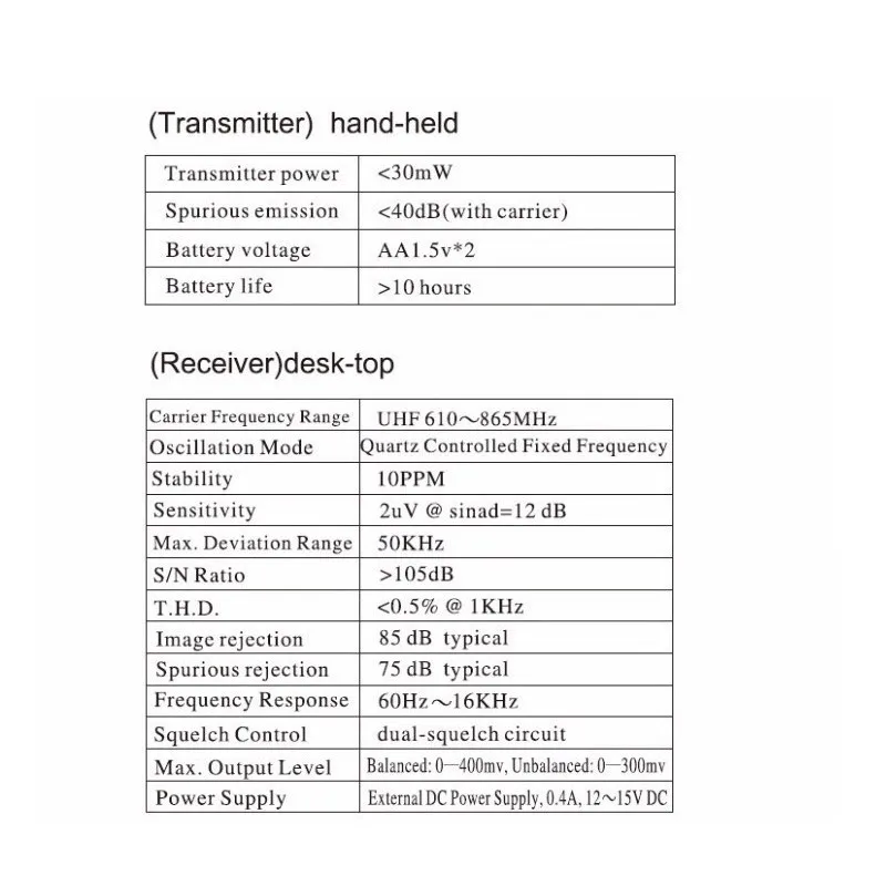 Диапазон несущей частоты: UHF610 ~ 865 МГц