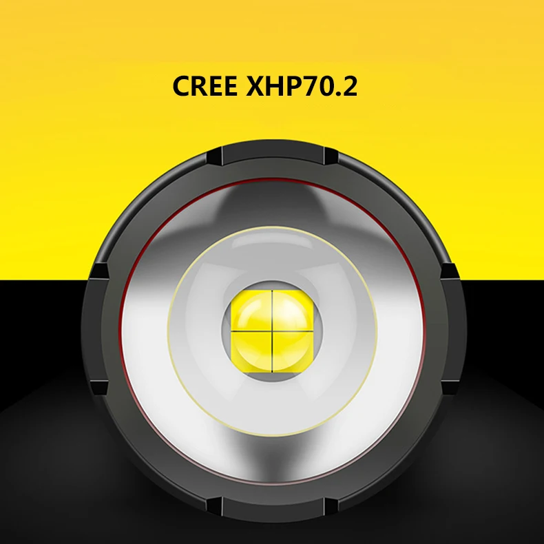 1, фонарик с использованием Cree xhp70.2 лампа шарик Максимальный световой поток 5000 люмен, высокая яркость, большой диапазон освещения Коротко: излучение широко, яркости достаточно для сравнения автомобильных фар! 2, использование 2*18650 или 2*26650 литиевых батарей, рабочие часы гарантированы 3, USB зарядка Мобильная функция питания Поддержка 4,2 V-5,0 V зарядка питания дисплей 4, фонарик IPX6 является водонепроницаемым и может использоваться в сильный дождь.