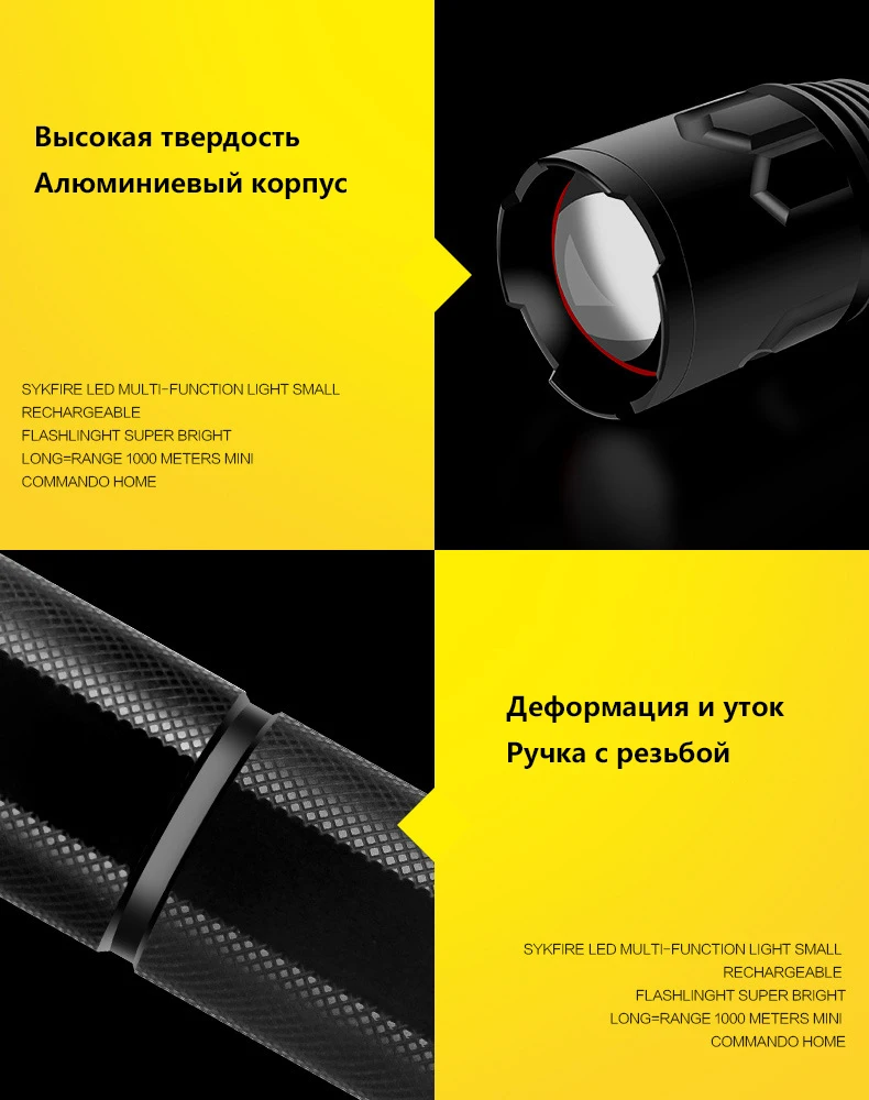 P7026 параметр Описание: Бренд: Бретт Название продукта: светодиодный фонарик Модель: P7026 Источник света: Cree xhp70.2 Внешний вид цвет: черный 5 режим передачи: высокий свет-яркий-низкий свет-SOS-вспышка Размер: 280 мм x 53 мм Источник питания: 2 аккумулятора 18650 или 2 аккумулятора 26650 Время освещения: 3-8 часов Метод зарядки: Прямая зарядка через USB (поддерживает 4,2-5 В) Диапазон: 500 метров Масштабирование: поверните с переменным фокусным расстоянием Другие особенности: экстренная зарядка мобильного телефона Водонепроницаемый Рейтинг: IPX-6 Вес: 280 г (без аккумулятора) Материал: T6063-T6 авиационный алюминий Применение: езда, охота, патруль, строительство, прогулки, дом, техническое обслуживание, поиск и спасение