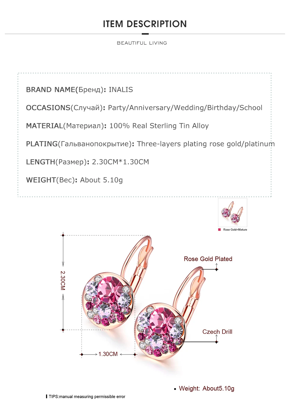 Название бренда: INALIS Случаи: свадьба, подарки для девушки, юбилей, вечерние Материал: сплав из настоящего олова Покрытие: Трехслойное покрытие платина/розовое золото 18k Вес: около 5,10 г