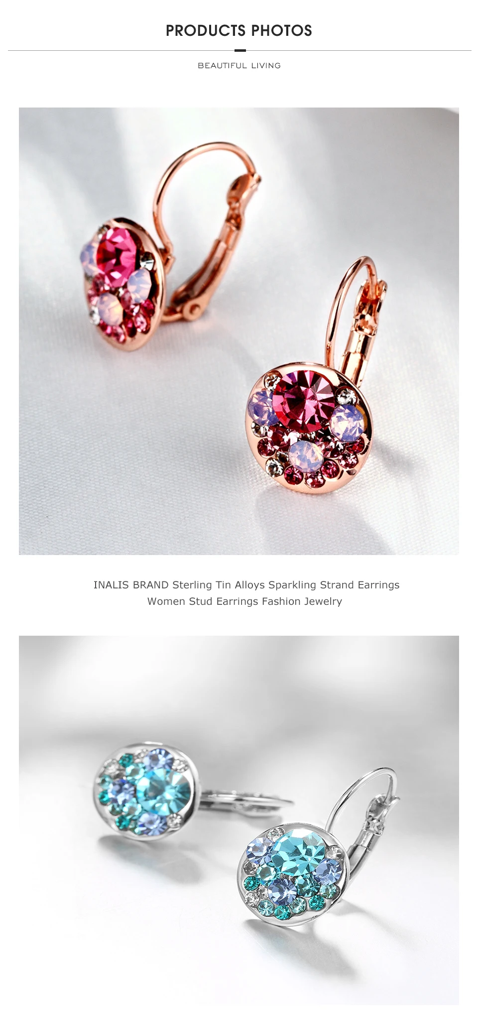 INALIS серьги для женщин Симпатичные оловянные сплавы многоцветные серьги инкрустированные круглые кубические циркониевые женские модные ювелирные изделия подарок девушке