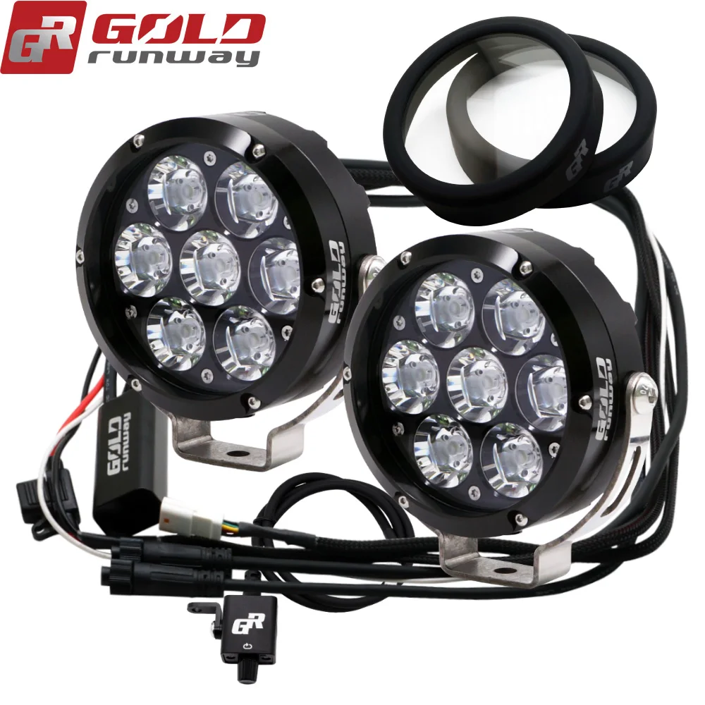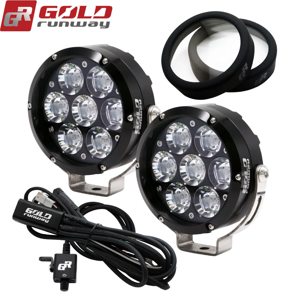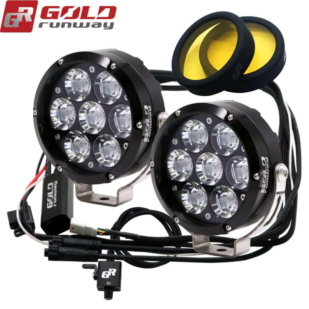 Светодиодный светильник GOLDRUNWAY GOLDRUNWAY конструкции предлагает широкий диапазон линия вспомогательный светодиодный системы освещения для выращивания Приключения мотоцикл на рынке, чтобы обеспечить уверены в том, безопасную ночную Верховая езда приключений. Излучатель: U3 светодиодный, 6500 Кельвин Режим: полностью затемняемый переключатель для изменения яркости 5%-100% и 3 режима стробоскопа. Светильник Материал дома: Жесткий анодированный и ЧПУ 6063 чистый алюминий 4,2 "диаметр. Сертификат IP68 (Погружной до 7 футов) Испытание механического удара Испытание на вибрацию Рабочая температура: от-40 по Цельсию до + 80 по Цельсию Люмен: 7500 + (каждый светильник) Вес нетто: 1,58 фунтов/0,72 кг/23,1 унций (каждый светильник) Жесткие анодированные & CNC 6063 чистые алюминиевые крепления Передняя линза: Поликарбонат с жестким покрытием Светодиодный срок службы: 49,930 часов Защита от обратного аккумулятора и преходящего напряжения (телевизоров) Посылка: 2x GOLDRUNWAY GR-70X 70 Вт светильник для мотоцикла 2XGOLDRUNWAY дальнего света с желтыми стеклами или прозрачные линзы 1X жгут проводов 1X диммер