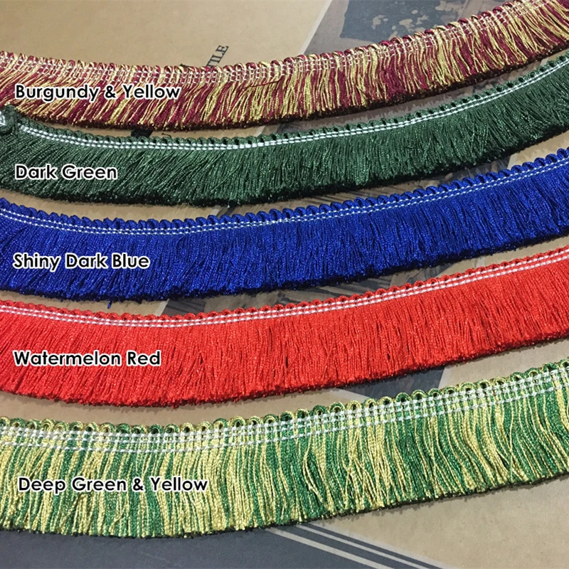 Блестящая бахрома 7 цветов для украшения домашнего текстиля Прочный и легко чистится Материал: 100% полиэстер Ширина: около 4 см Вес: около 44 г на метр Сделано в Китае