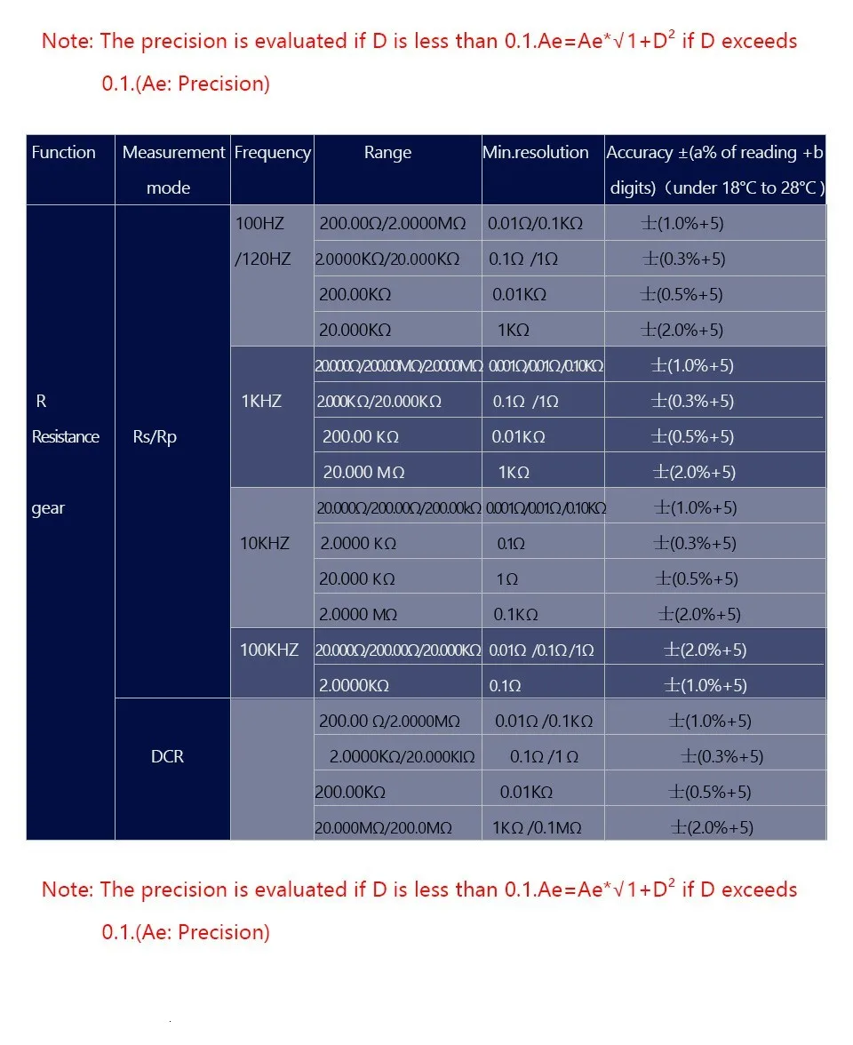 20Ω ~ 200MΩ |