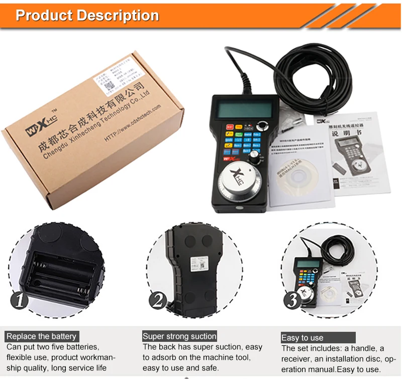 Ручка WHB04-L черного цвета с простой цветовой схемой для лучшего отображения кнопок. Проводной usb-кабель на маховике длиной 5 метров.