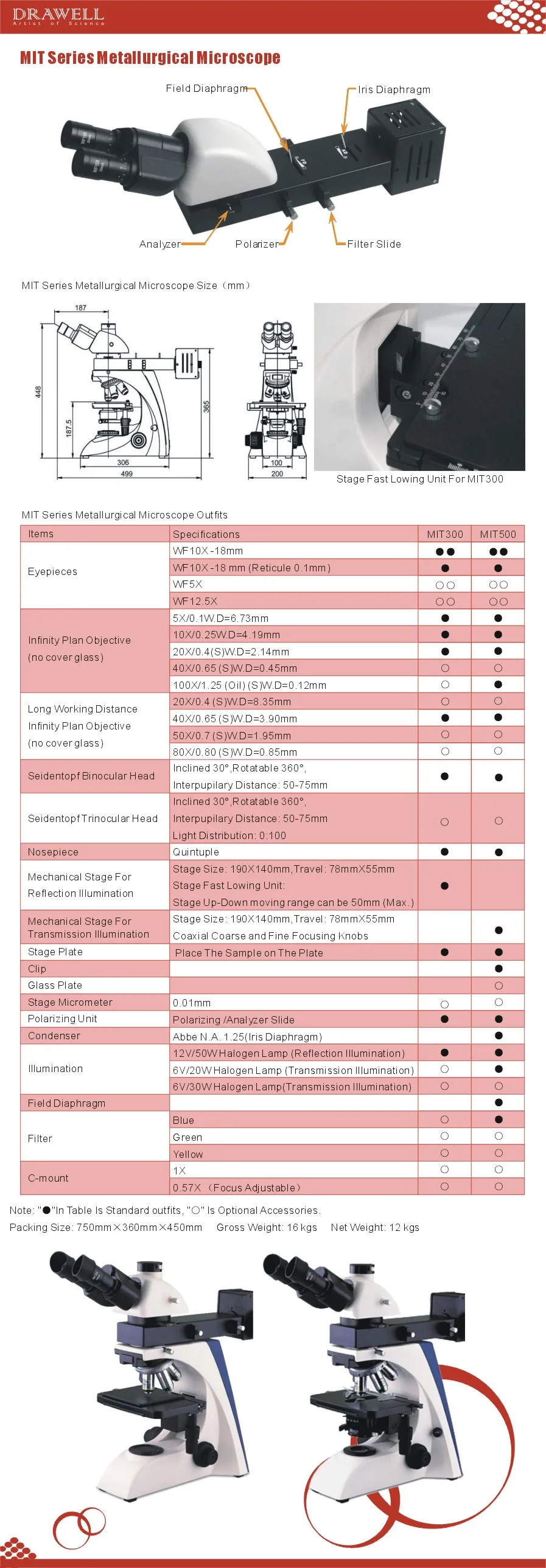 Металлургический микроскоп СЕРИИ MIT с галогенной лампой, бинокль MIT300