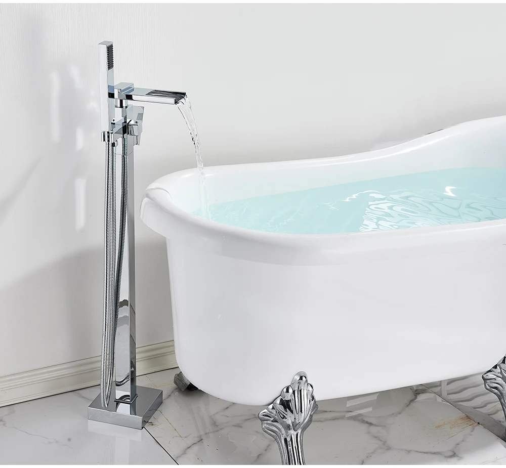 POIQIHY смеситель для ванной светодиодный светильник хромированные напольные стойки-смесители водопад Носик холодная горячая ванна смеситель кран с ручным душевым