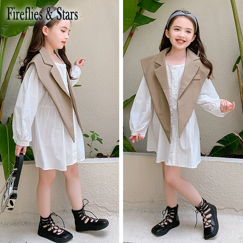 Название:Весенне-осенний комплект из 2 предметов для девочек, платье для малышей + шаль, детские костюмы Детская уличная одежда, модная однотонная накидка цвета хаки с острым воротником для детей от 1 до 7 лет