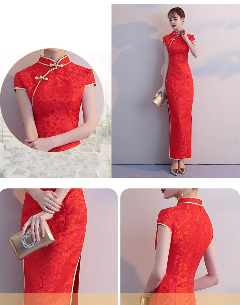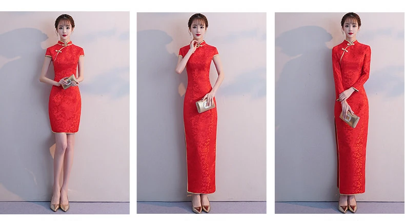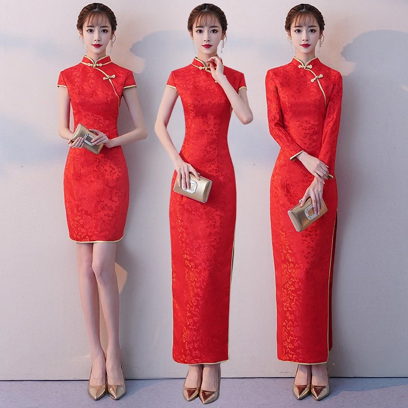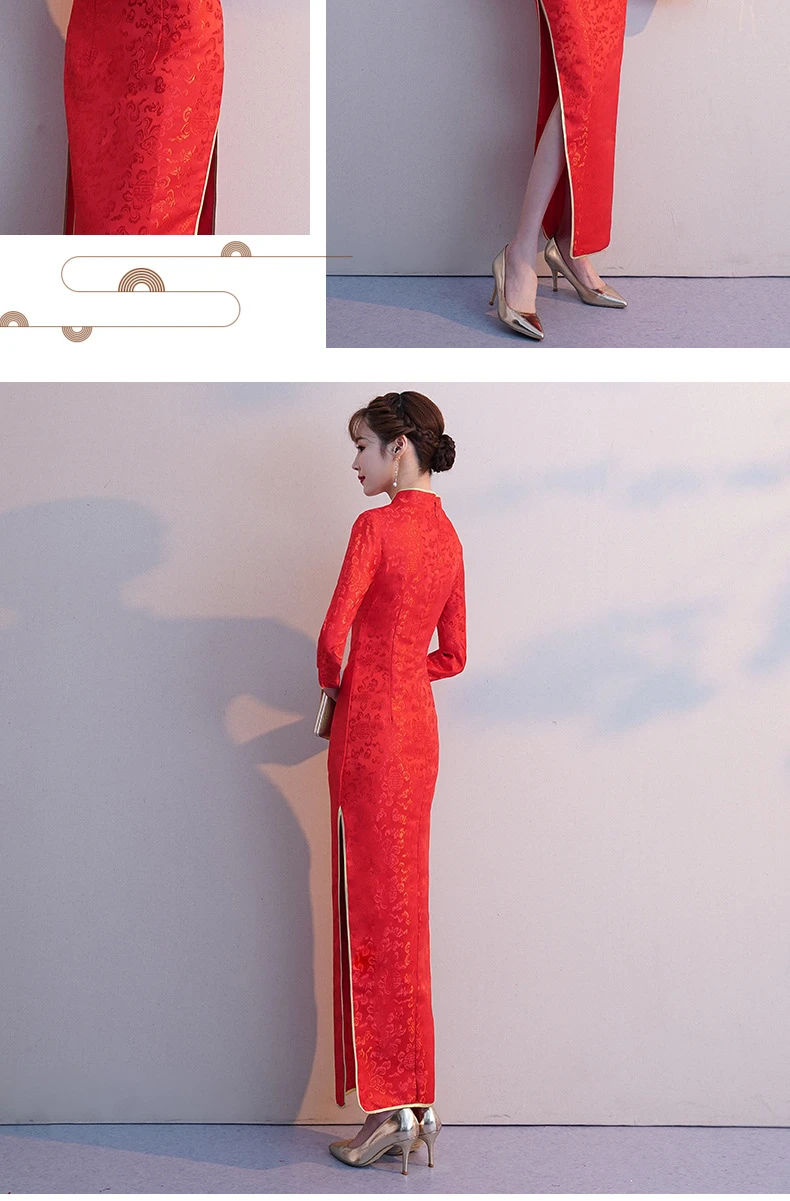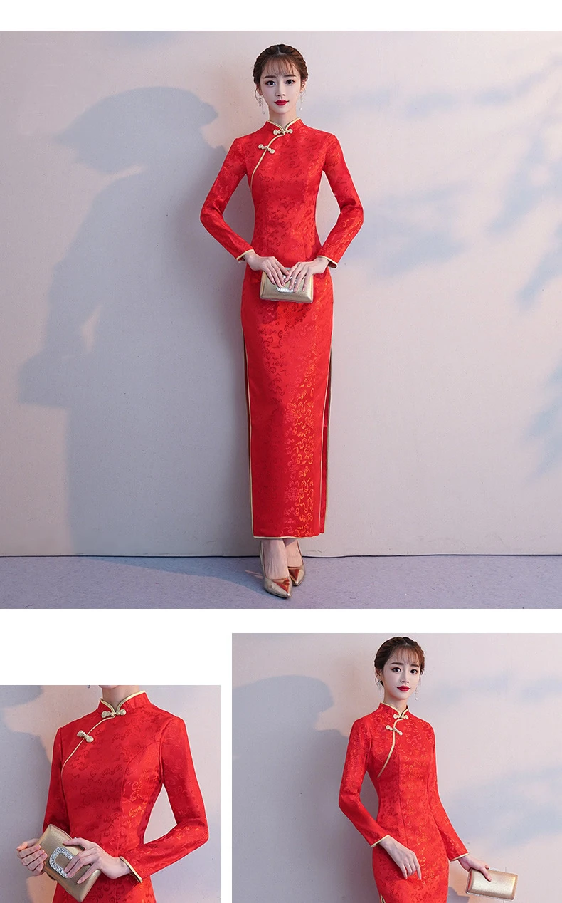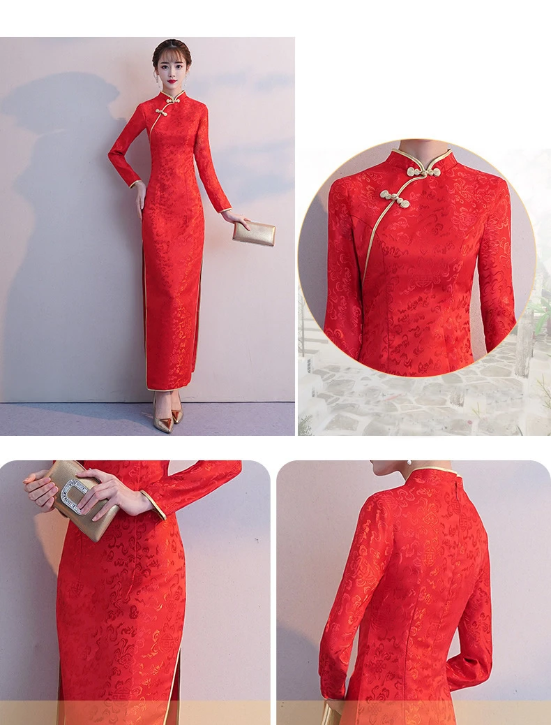 Осенне-зимнее Однотонное шерстяное Платье Чонсам с длинными рукавами и вышивкой