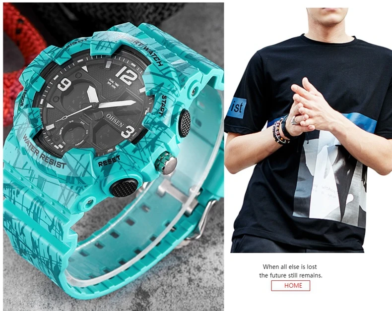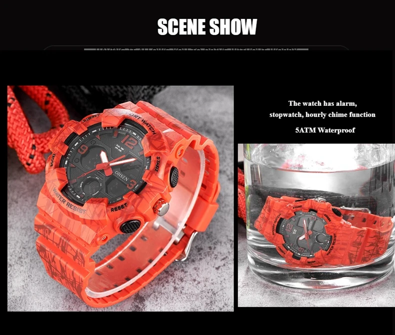 Двойной дисплей времени Цифровой: часы, минуты, секунды, вечера, месяц, дата, день Формат 12/24 часов Цифровой светодиодный дисплей, нажмите кнопку «светильник», чтобы четко видеть время в темноте Будильник и функция ежечасного звонка Специальная конструкция с хронограф (секундомер) при температуре не выше 0,01 второй шаг Водонепроницаемость до 50 м (не нажимайте кнопку в воде) Ударопрочность, подходит как для занятий спортом на открытом воздухе, так и для занятий спортом в помещении