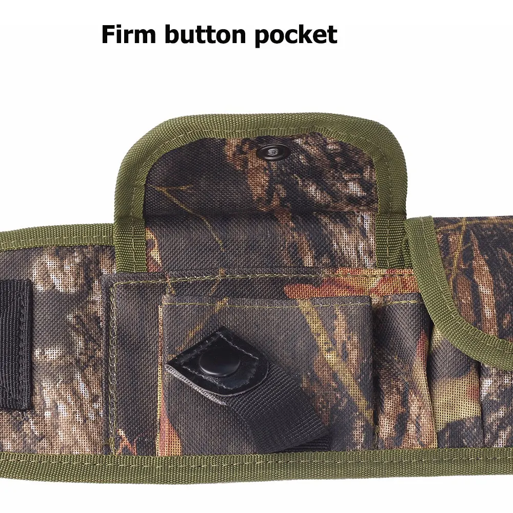 • Изготовлен из нейлона 600D, прочный и водонепроницаемый. • Также может быть как сумка на ремне, идеально подходит для тактической охоты. • Полностью регулируемый поясной ремень с быстроразъемной пряжкой. Регулируемый ремешок, подходит до 105 см/126/132 см и т. Д. • Доступны 3 типа, которые могут содержать различные количества патронов; Тип 1: Ремень С 5 Карманами, 3 средних кармана до 15 патронов 12/20 калибровочных патронов и 2 больших кармана с двух сторон для хранения других охотничьих инструментов или более патронов; Тип 2: ремень с 7 карманами, может держать до 25 патронов 12/20 калибровочных патронов. Тип 3: ремень без кармана, может держать до 28 патронов 12/20 калибровочных патронов