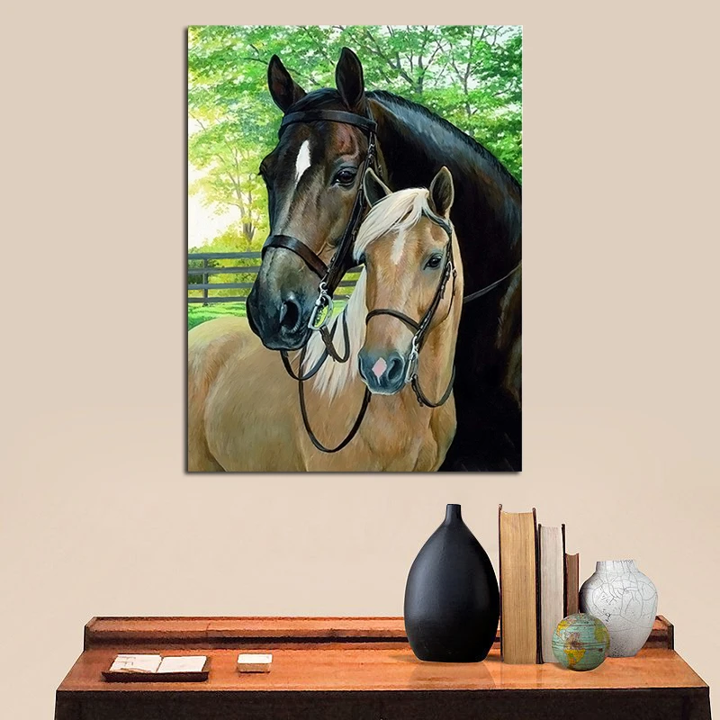 5D DIY Алмазная картина, Набор для вышивки крестиком, две лошади, рукоделие, Алмазная мозаика, алмазная вышивка, домашнее украшение, DIY картинки