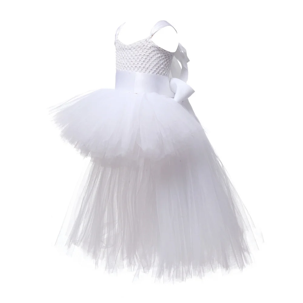 Детское платье-пачка со шлейфом для девочек белое фатиновое платье с цветочным узором для девочек вечерние бальные платья для свадьбы для детей, Пышное Платье для выступлений для девочек