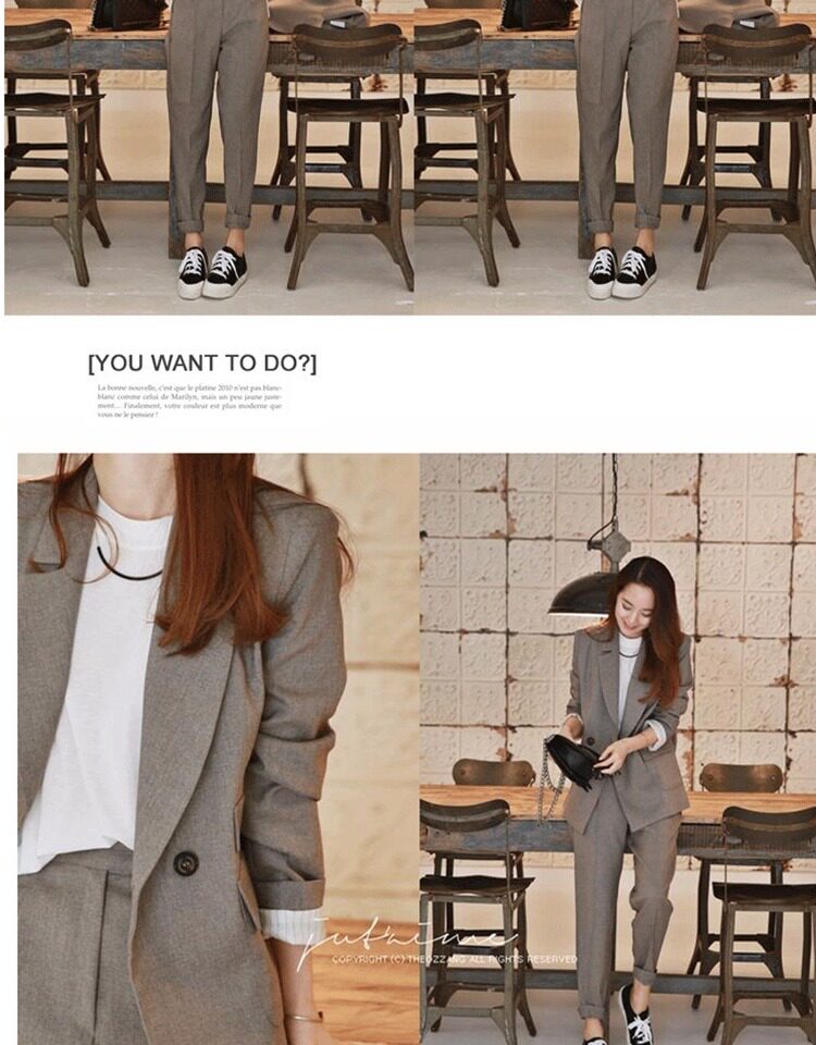 Осенняя одежда для работы, женские штаны, модные, элегантные, формальные, черный, серый, длинный рукав, блейзер с брюками, офисные женские костюмы, комплект из двух предметов