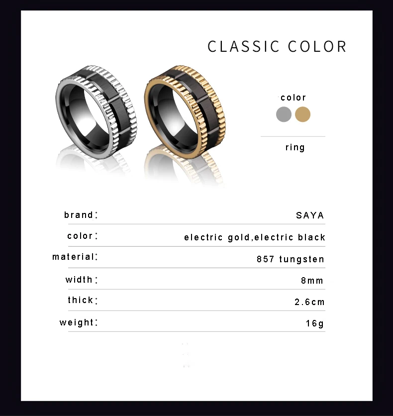 Особенности: не царапается, не изнашивается, водонепроницаемый, удобный в носке, хороший блеск, высокая твердость, чем больше вы носите, тем больше вы выглядите как новее