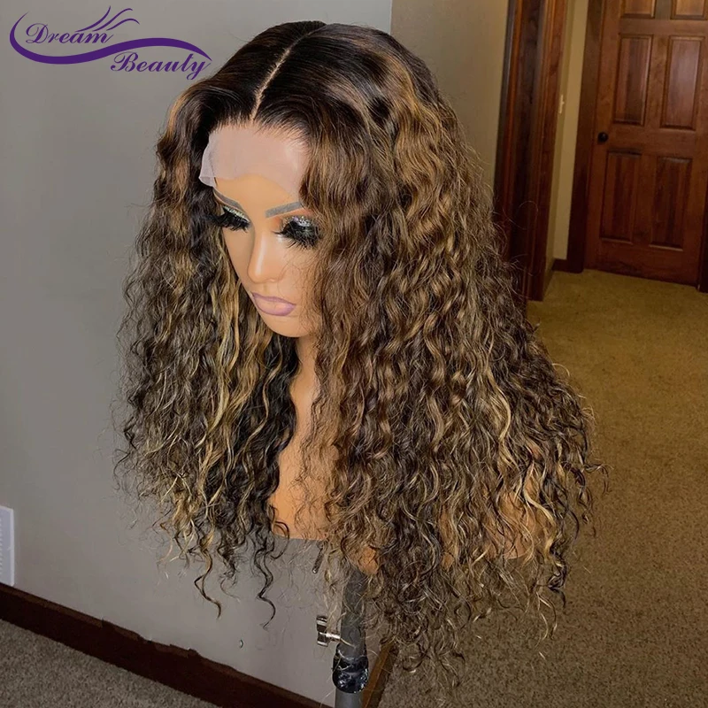 Эффектом деграде (переход от темного к Выделите вьющиеся Синтетические волосы на кружеве человеческих волос парики 13x4 наращивания блонд, коричневый, Синтетические волосы на кружеве парик бразильский Синтетические волосы на кружеве al парик мечта Красота