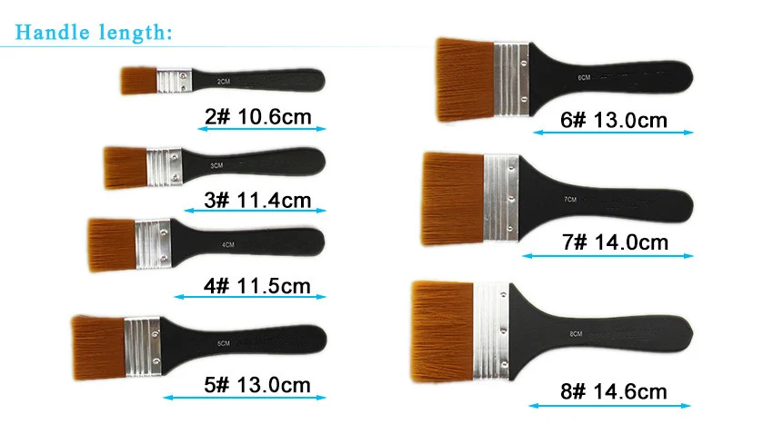 Высококачественная нейлоновая ручка центов производства, он обладает более высоким уровнем обслуживания производительности, гибкие, быстро, плавного хода картина хороший эффект, подходит для Акварельная картина маслом акриловые картины и прочие художественные производства Подходит для профессионального использования или учебы практики использования. 1. Установка: 7 разных размеров в комплекте 2. Волос Материал: набор нейлоновых волосяных 3. Материал ручки: дерево. 4. Размеры: #2, #3, #4, #5, #6, #7, #8 (поскольку мерки снимаются вручную, из-за измерений имеется погрешность около 0,2 ~ 0,5 см) 5. Цвет: черный 6. Упаковка: ПВХ В комплект входит: 1 * Кисть для масляной живописи