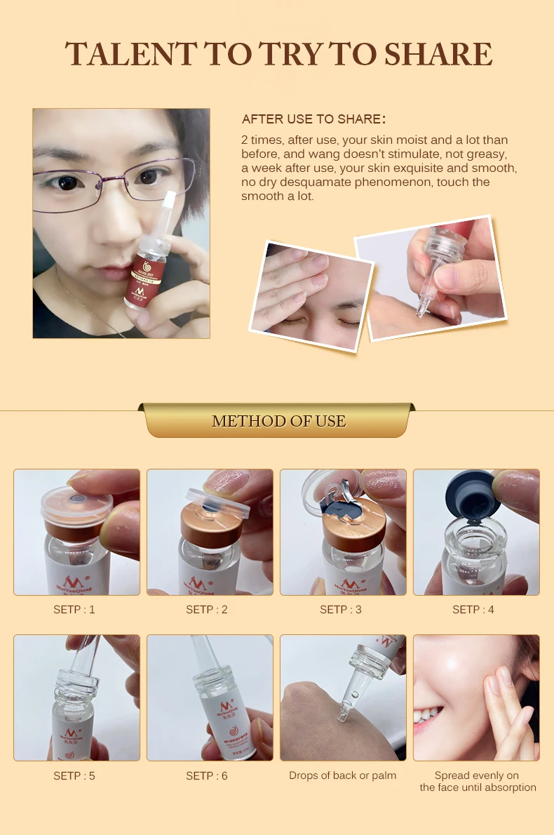 1. После очистки кожи нанесите lto 2 капли оригинальных капель в челюсти. 2. С пальцами на лице, лице, мягко массируйте. 3. До впитывания с обеих сторон, с кремом или лосьоном лучше.