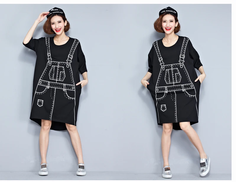 Осеннее платье большого размера, футболка с 3D принтом, Хлопковая женская футболка Hlaf, модные черные свободные топы Kawaii в стиле панк большого размера, AF213