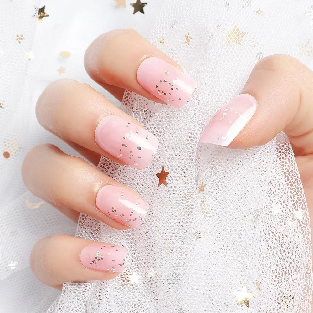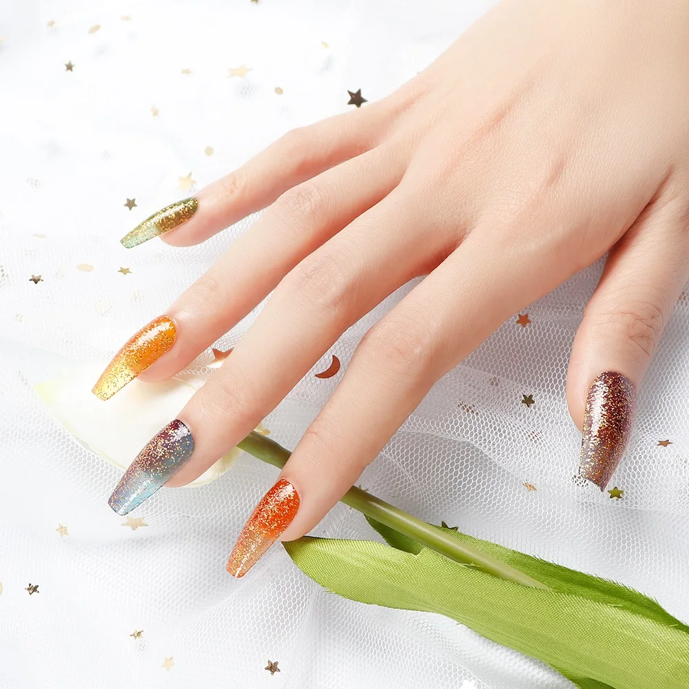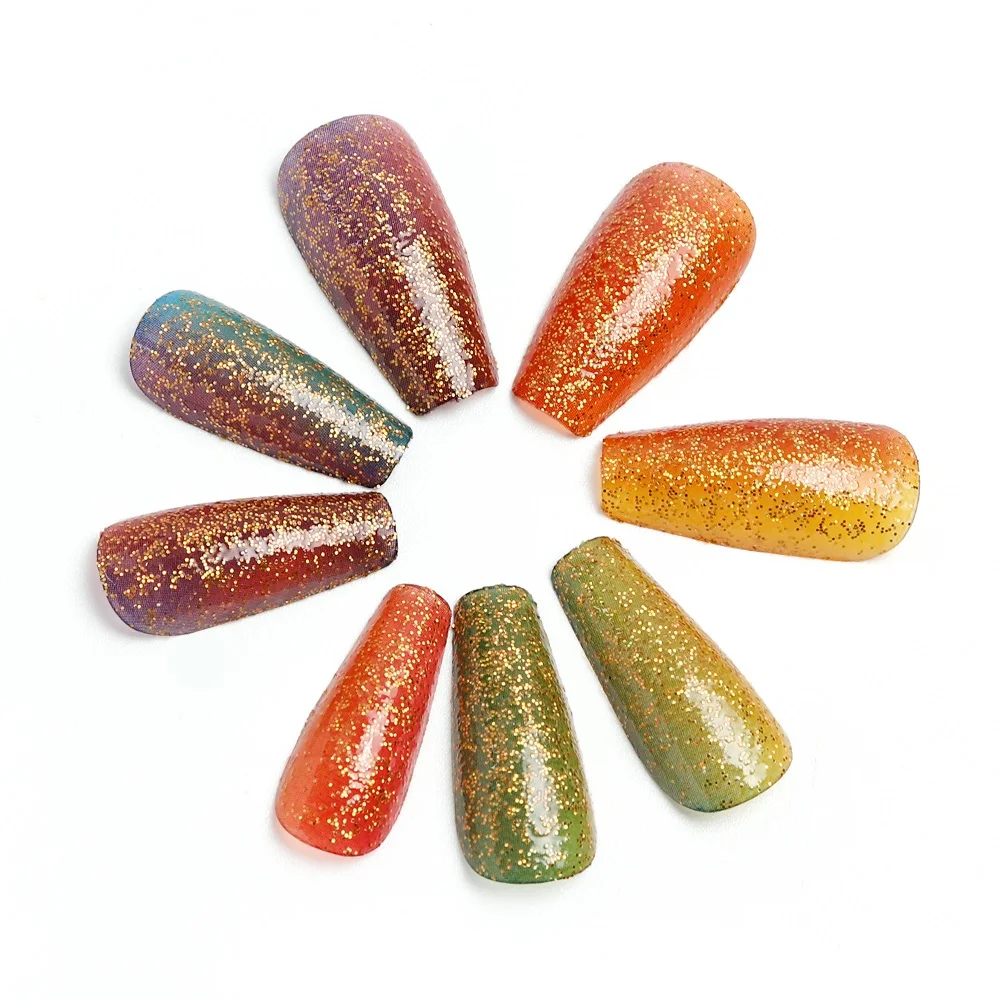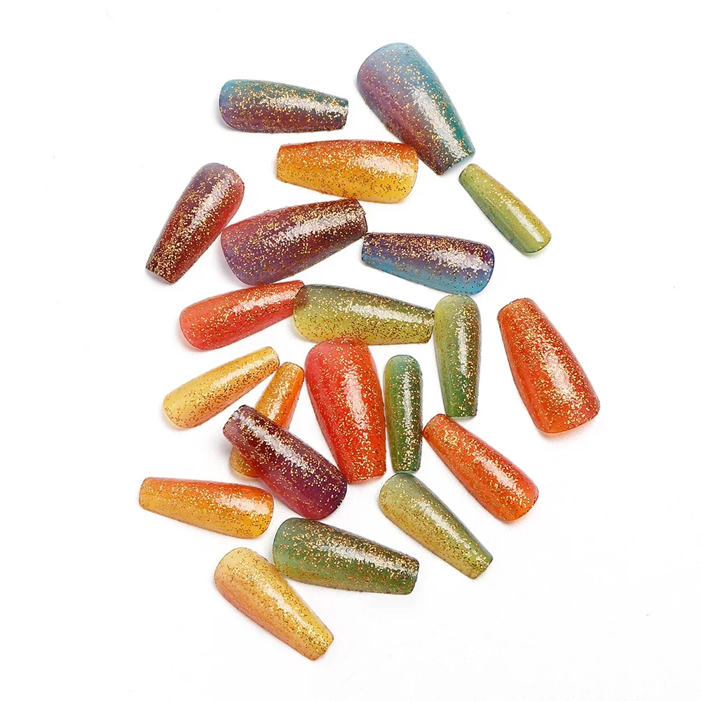 Блестящий цветной дизайн накладные ногти длинные квадратные съемные накладные ногти полное покрытие накладные ногти на пальцах накладные ногти для девочек наклейки на ногти