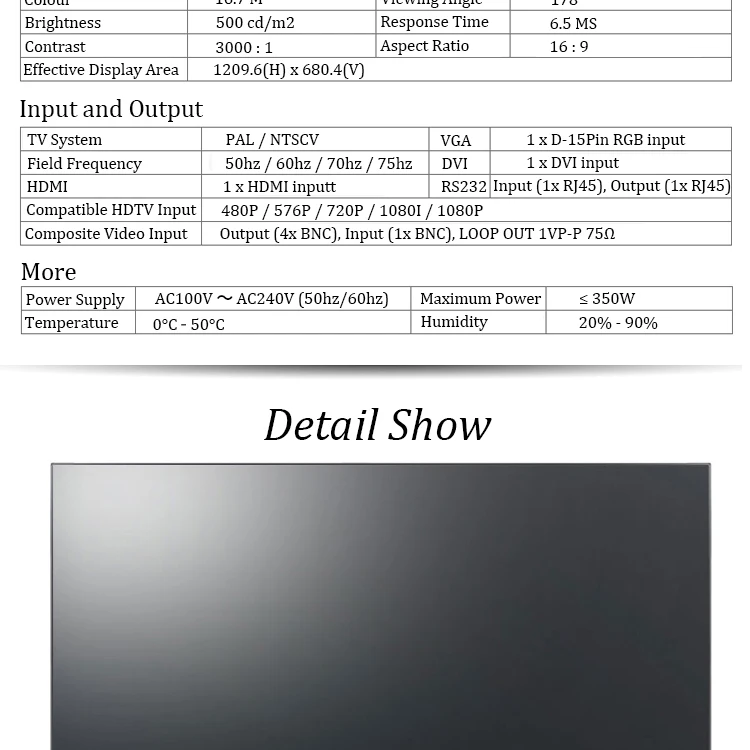 | Размер панели | 46 дюймов 49 дюймов 55 дюймов, 47 дюймов 49 дюймов 55 дюймов, SCR 49 дюймов 55 дюймов |
